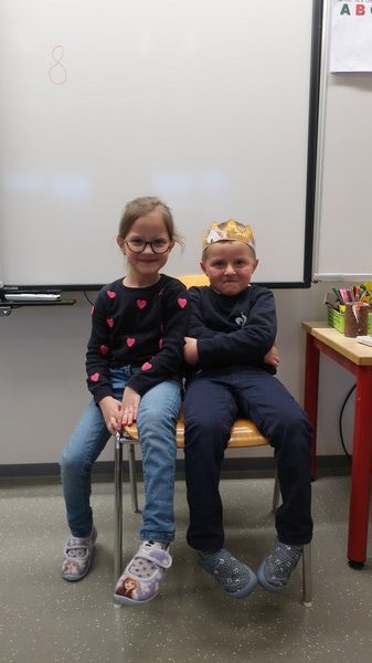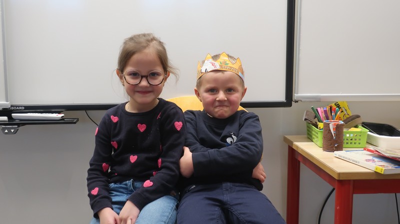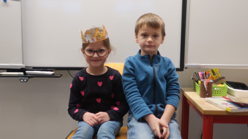 Roman a trouvé la première fève et a choisi Lucie comme reine. Puis Emile a découvert une autre fève et C’est Louise qu’il a choisie. Emma a trouvé la troisième et a choisi Baptiste pour roi. Et la dernière fève a été pour Lucie et Hugo est devenu son roi !
