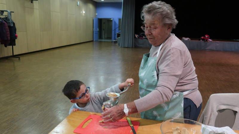 Hier matin, nous avions rendez-vous en salle socio-culturelle avec Sonia (présidente de l’association et mamie de Naël) et  sa fidèle équipe pour notre annuelle participation à la confection de « bredele ». Merci à toutes pour ce beau moment de partage! IMG_5385 IMG_5386 IMG_5387