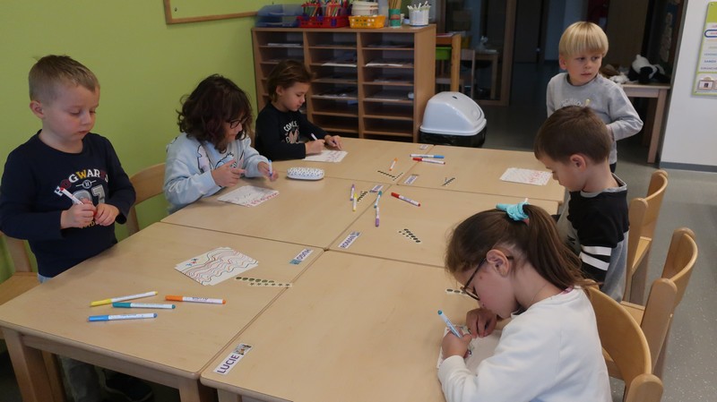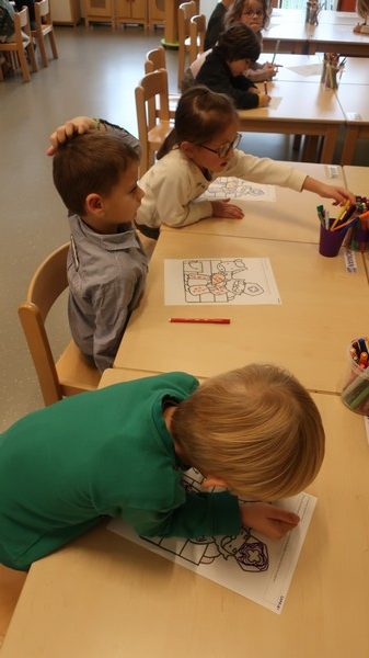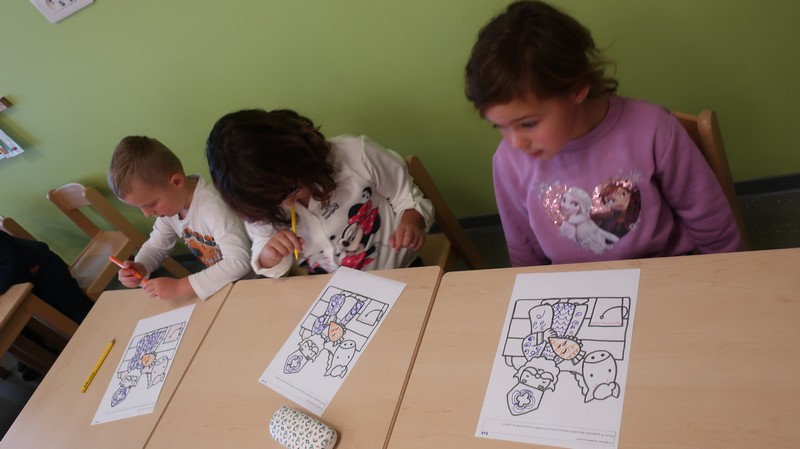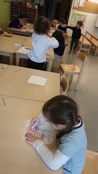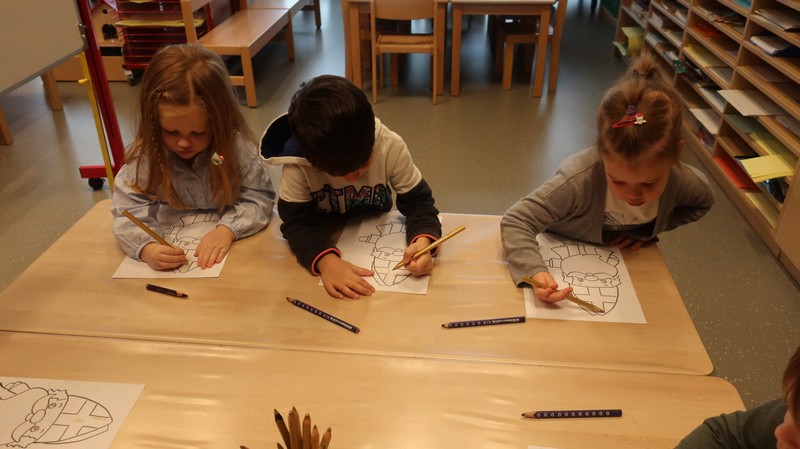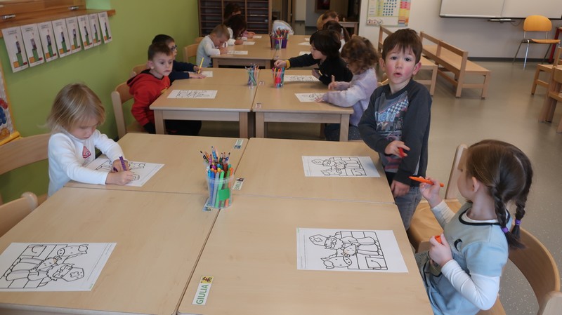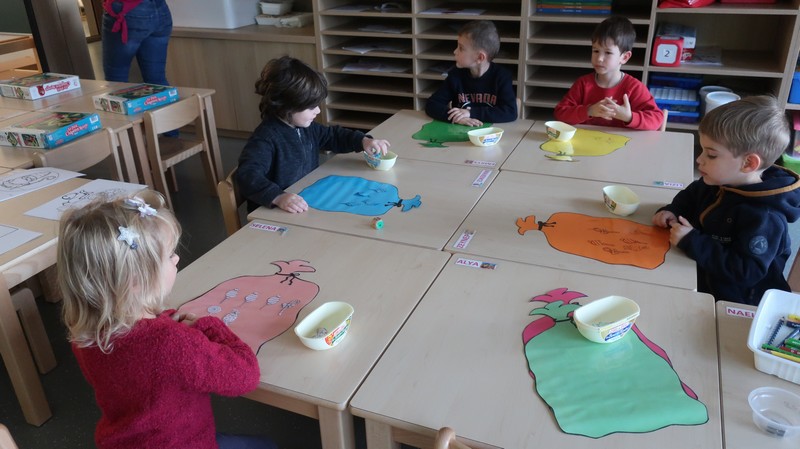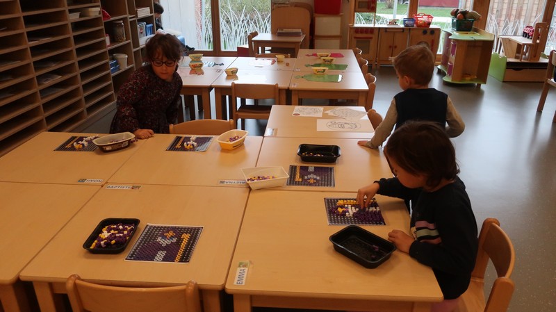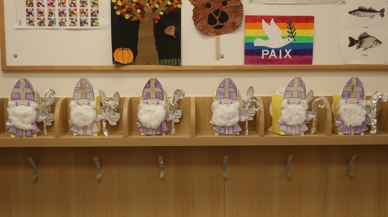 Les enfants ont fait des jeux de société, reconstitué Saint Nicolas en pions sur une planche à picots, fait des graphismes, de la lecture, des mathématiques autour de notre homme habillé de violet.