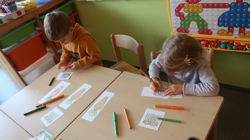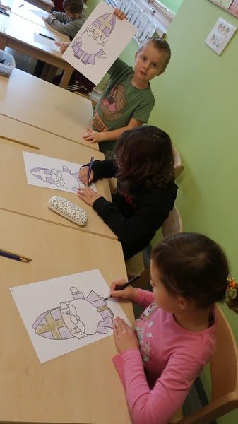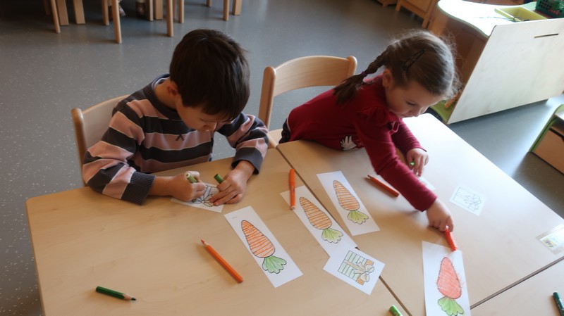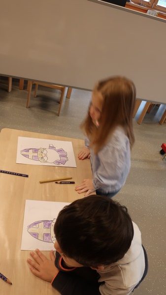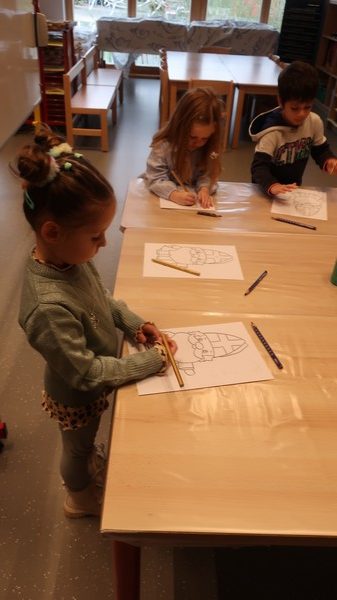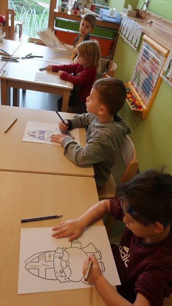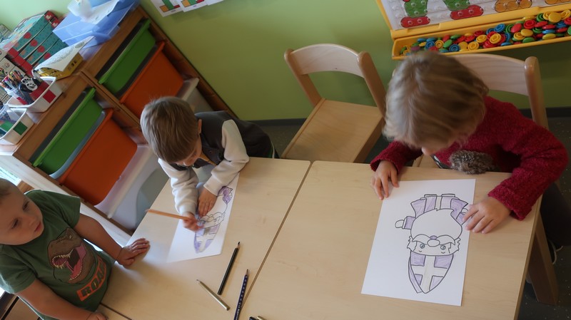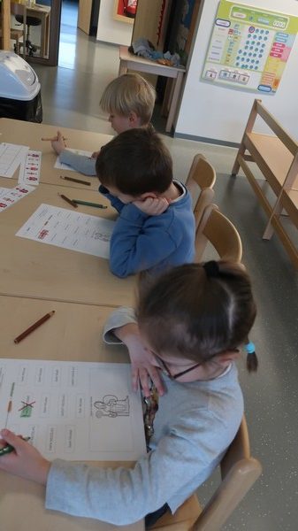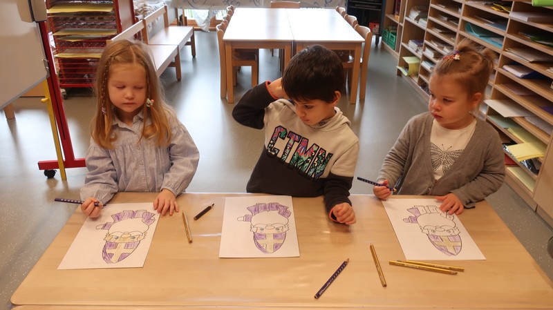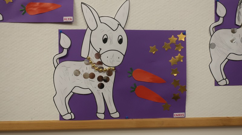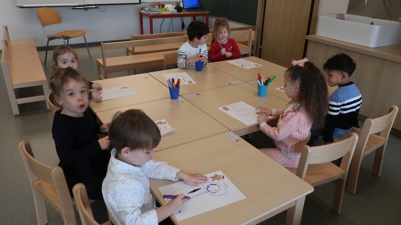 Les enfants ont fait des jeux de société, reconstitué Saint Nicolas en pions sur une planche à picots, fait des graphismes, de la lecture, des mathématiques autour de notre homme habillé de violet.