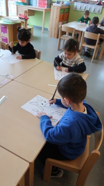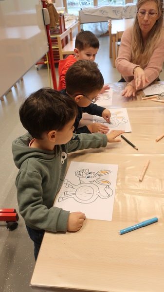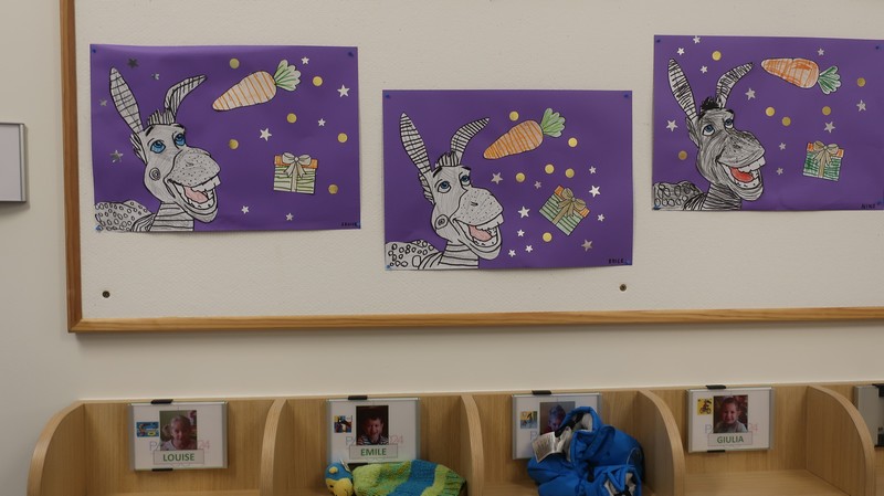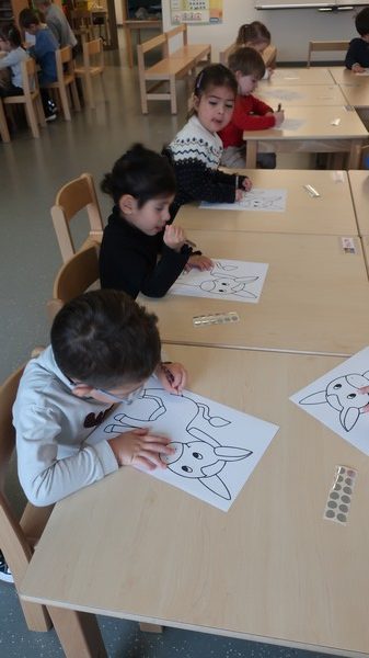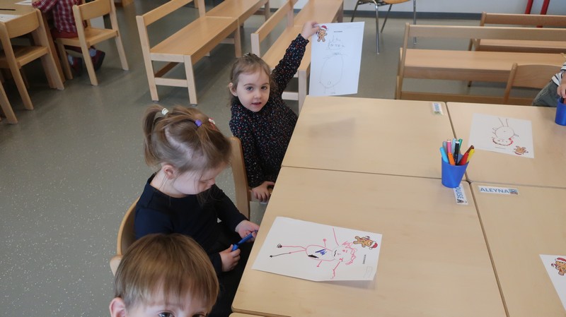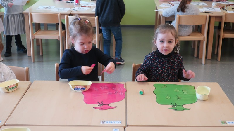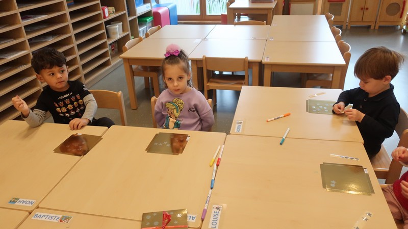 Voici nos activités sur le thème de Noël: tracer un sapin, compléter un Père Noël, fabriquer une guirlande, modeler des formes, goûter le »bredele »des mamies (encore merci à Sonia et ses copines!), grimper voir le Père Noël, peindre sur du bois (merci Evan et toute la famille Becker pour la confection des formes), habiller des oursons, résoudre les énigmes du calendrier numérique https://www.mathsenvie.fr/1-jour-1-enigme-decembre-2023/et attendre son tour d’être tiré au sort pour la maison…