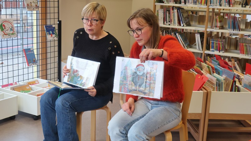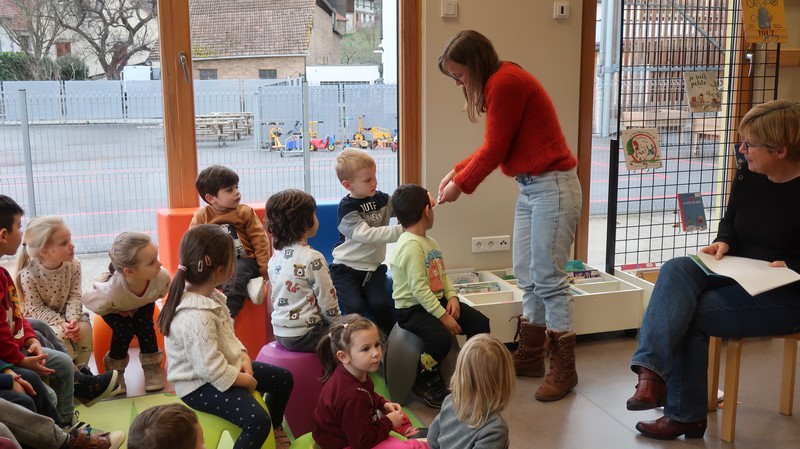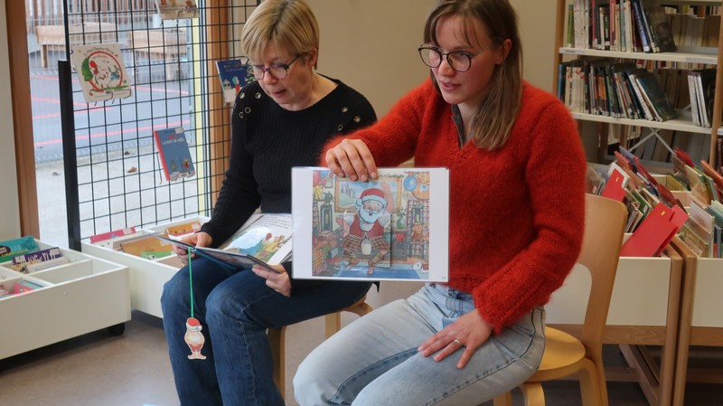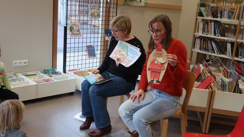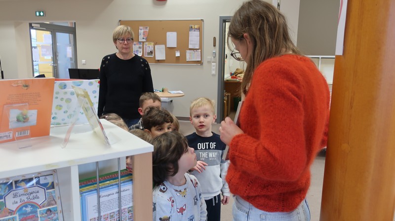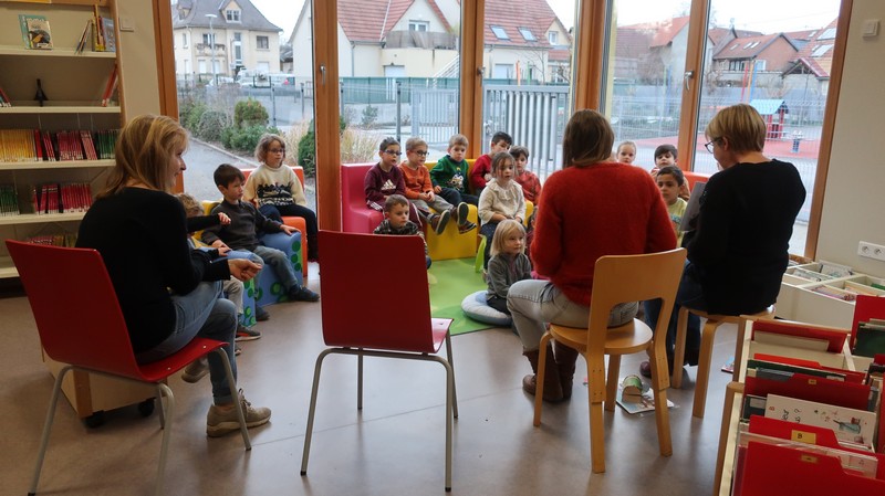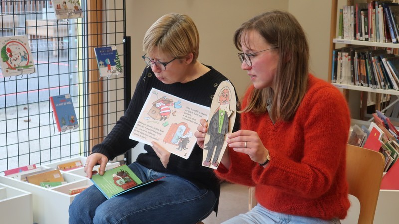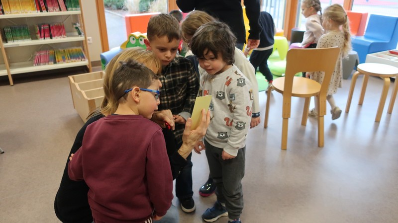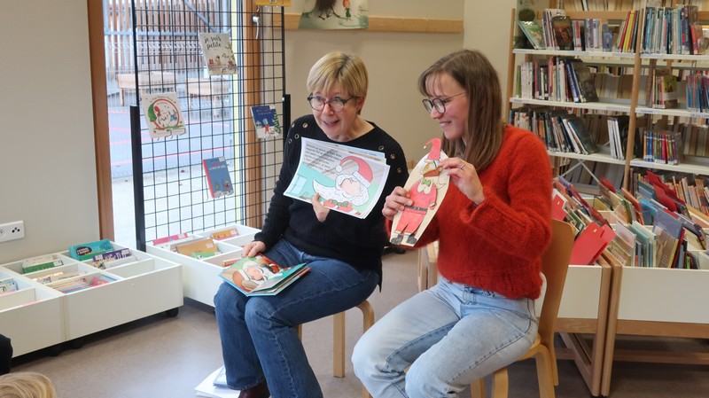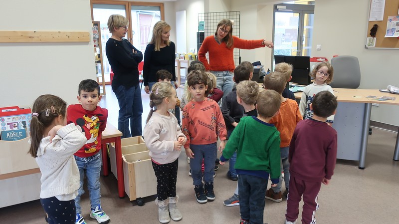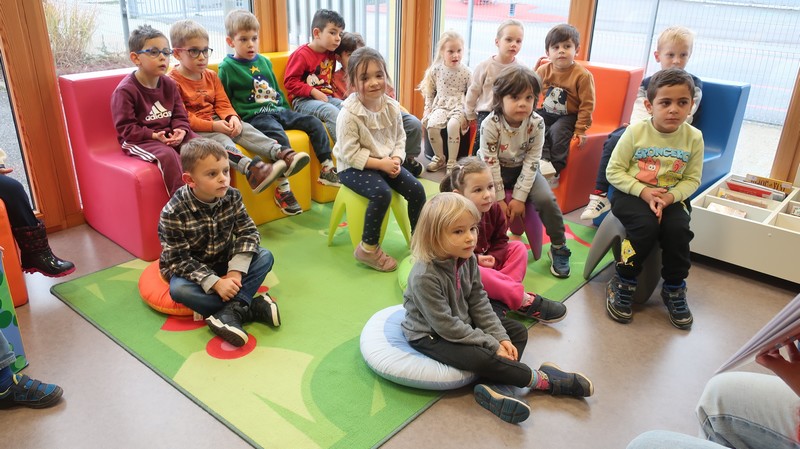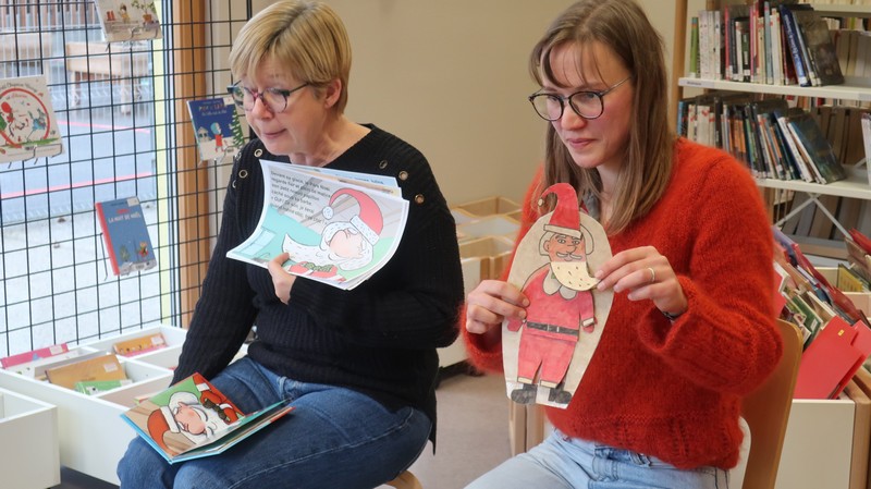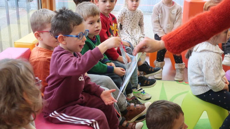 Mardi après-midi, les moyens sont allés à la bibliothèque municipale. Ils ont d’abord suivi Camille et Dominique dans la visite du lieu. Puis ce fut le moment du jeu de piste: à partir d’une photo de certains endroits, les enfants , en équipe, devaient retrouver un objet de Noël. Au total, 4 objets par équipe: tous ont gagné… le droit d’écouter deux histoires de Noël dans lesquelles le Père Noël a envie de changer de vêtements.