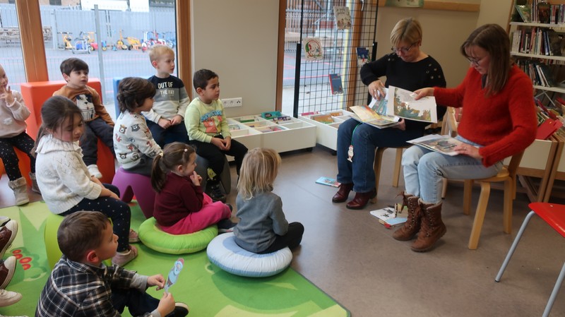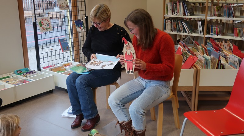 Après les moyens, c’est au tour des grands de se rendre à la bibliothèque ce mardi après-midi, accueillis par Camille (maman de Louise) et Dominique. La visite s’est déroulée en deux temps forts: la recherche de 6 indices par équipe de 3 enfants IMG_5542 IMG_5543 et l’écoute de deux histoires avec comme personnage principal … le Père Noël, bien sûr ! Un grand merci à Dominique et Camille, qui espèrent revoir bientôt les enfants à la bibliothèque, ouverte les mercredis et samedis.
