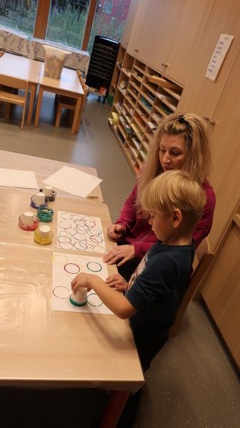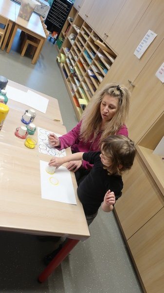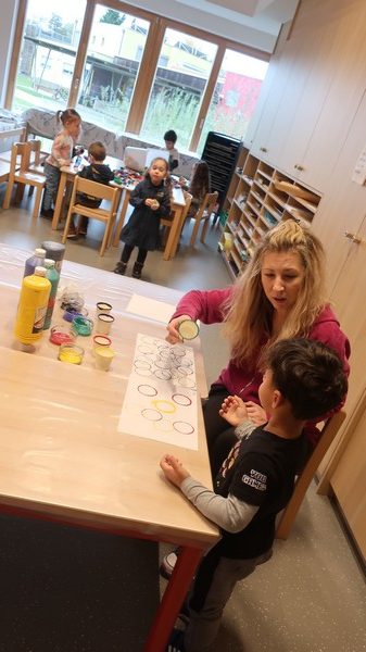 Avec l’aide de Morgane (maman de Naomi), c’est parti pour les premières décorations de Noël: peinture sur pommes de pin et boules en bois et modelage d’étoiles. Par petits groupes, encadrés par Elisabeth et Morgane, les enfants ont peint…et voici les pommes de pin prêtes à être accrochées au grand sapin du marché de l’Avent qui aura lieu ce week-end dans la salle socio-culturelle. Morgane y tiendra un stand avec ses productions. Venez nombreux soutenir les exposants locaux et entrer dans la magie de Noël !