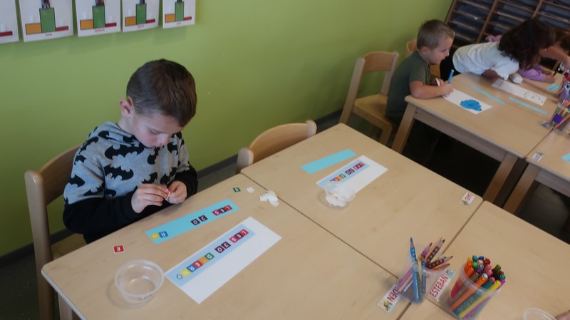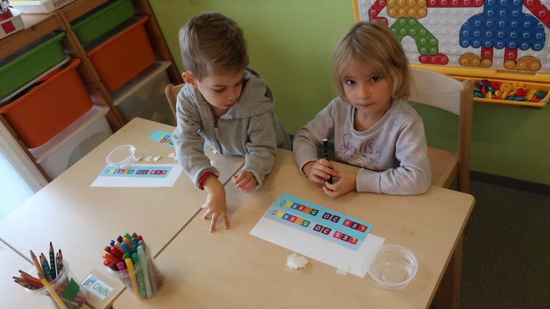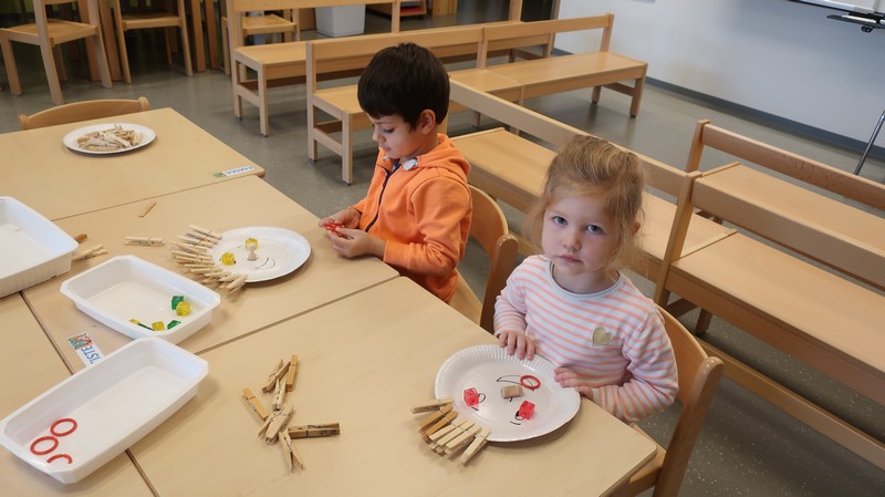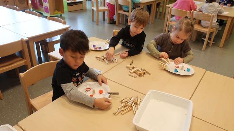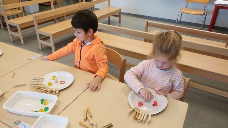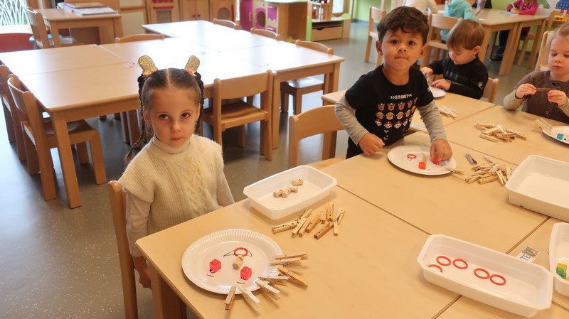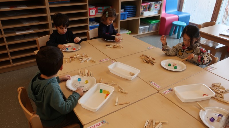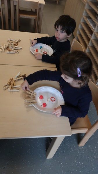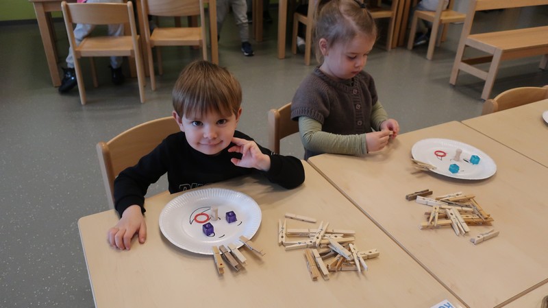 Les petits se sont livrés à des activités de tri de couleur puis de taille, ont composé un visage.