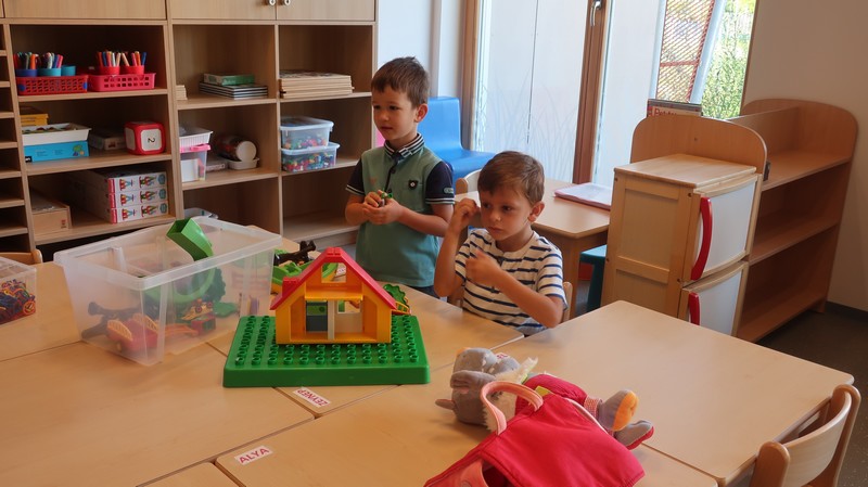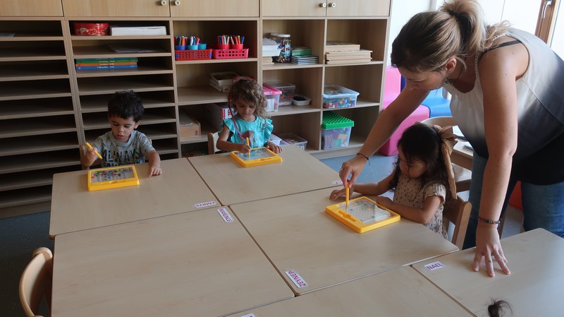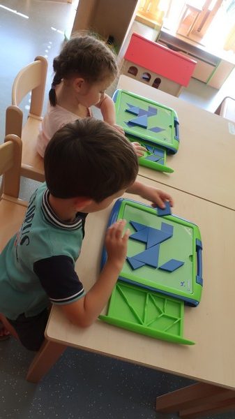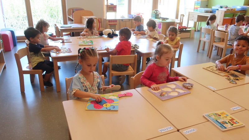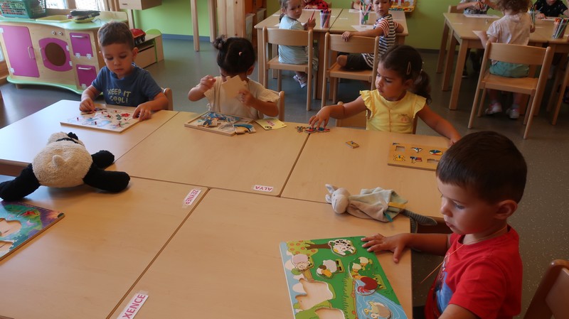 Pour comprendre la place du jeu dans la vie d’un enfant, voici une citation de Pauline Kergomard: « Le jeu c’est le travail de l’enfant, c’est son métier, c’est sa vie. L’enfant qui joue à l’école maternelle s’initie à la vie scolaire. » D’où l’importance de ces espaces de jeux, accessibles librement par les enfants après le « Bonjour » et le passage au tableau de présences. Mais, pour jouer, n’oublie pas de mettre le collier ! Ces coins sont les suivants: le tableau, la table ronde, les poupées, la cuisine, les livres, le crocodile et le carré. Cette après-midi, deux nouveaux espaces ont été présentés aux enfants. Quel collier as-tu choisi ? Quel est ton coin préféré ?