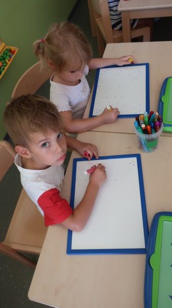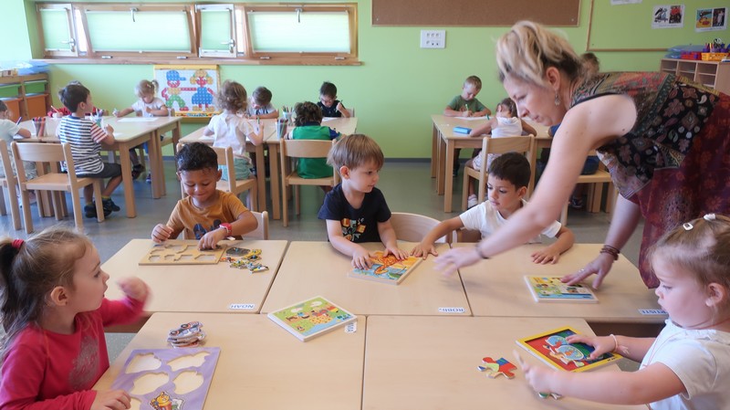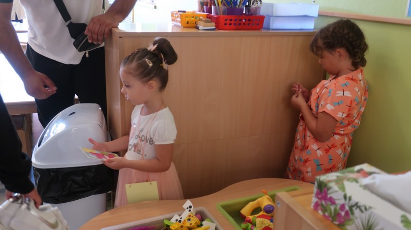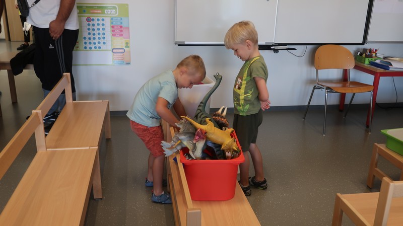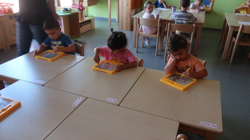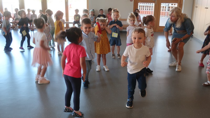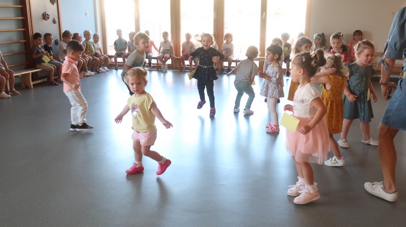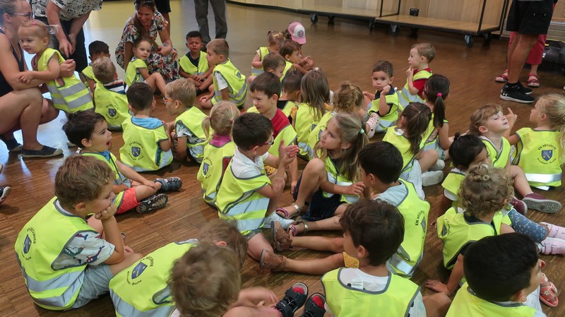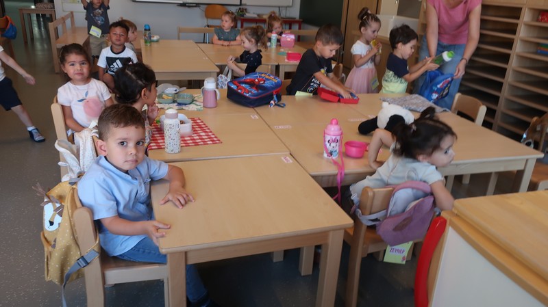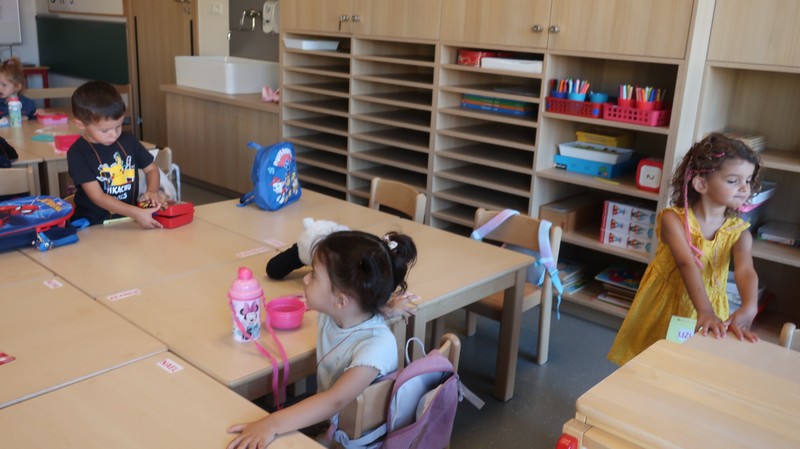 Après le départ des parents, place aux différentes activités: regroupement sur les bancs pour apprendre à se connaître et chanter, aux tables par groupe de couleur et , pour fêter la rentrée en musique, retrouvons la classe de maîtresse Christelle en salle de jeux pour danser : IMG_3304 Au retour de la salle de jeux, c’est l’heure du goûter et enfin de la récréation. Une belle matinée ensoleillée, riche en émotions et en découvertes !