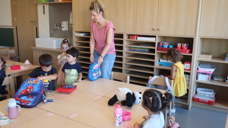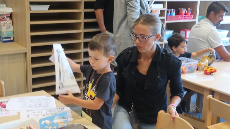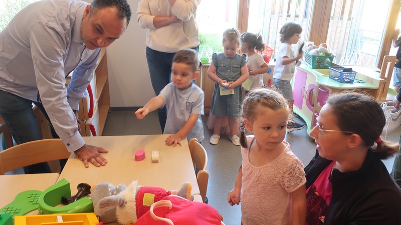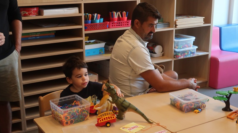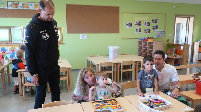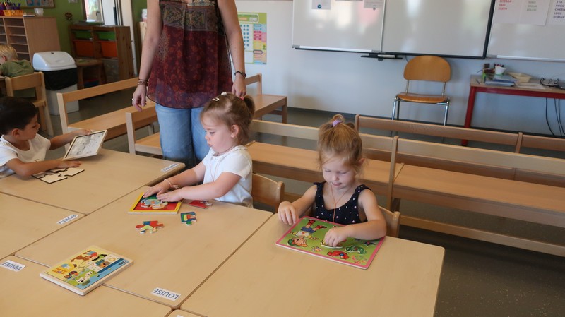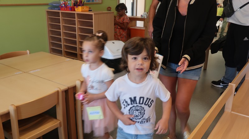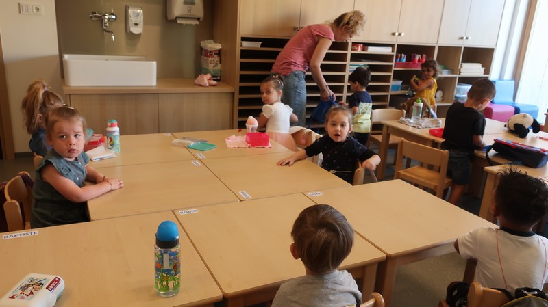 Pour les 13 petits de la classe, c’est le premier jour d’école…mais pour tous, enfants et adultes, c’est un moment chargé d’émotions. Soulignons les efforts d’accompagnement du côté des familles et un accueil chaleureux de l’équipe éducative: bienvenue les enfants et les parents aussi ! Mais l’envie de rester avec maman, l’ épreuve de la séparation et les pleurs qu’elle peut engendrer n’ont pu être évités chez certains enfants… Ça ira mieux le lendemain !