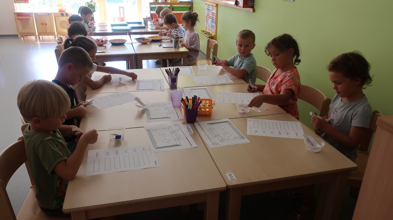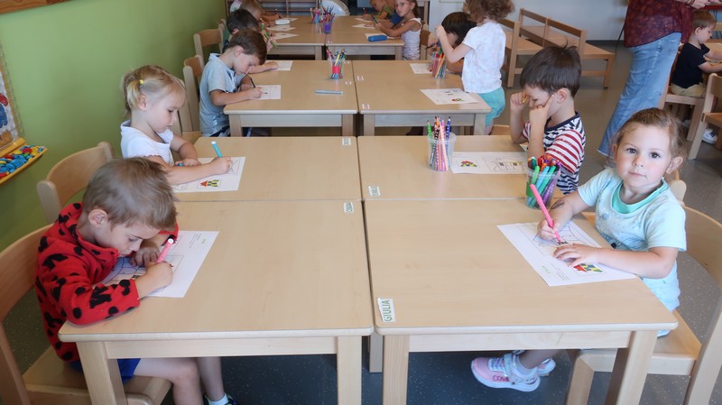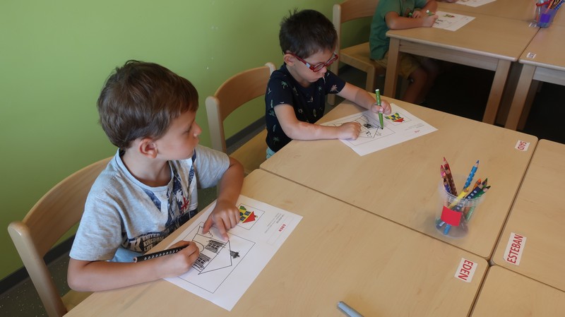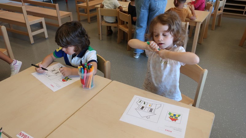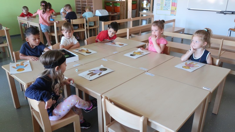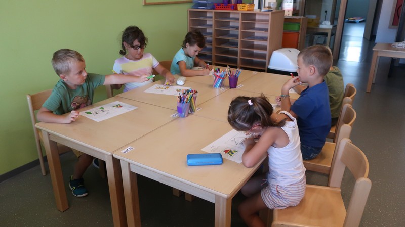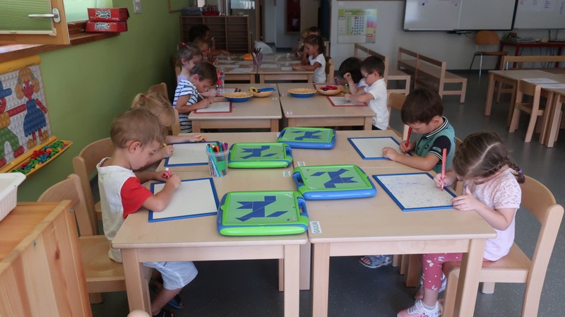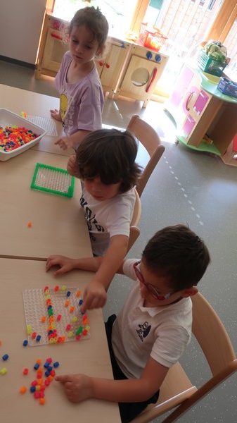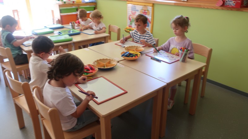 A l’heure des ateliers, une activité différente est proposée à chaque groupe de couleur. Les enfants essayent de rester assis et de terminer le « travail ». Les couleurs attribuées aux groupes sont les suivantes: bleu et jaune pour les petits, orange et rouge pour les moyens et vert pour les grands. Merci de vérifier si votre enfant connait la couleur de son groupe et sait dire ce qu’il a fait (avec l’aide des photos). Bon mercredi et à jeudi !