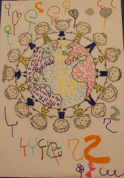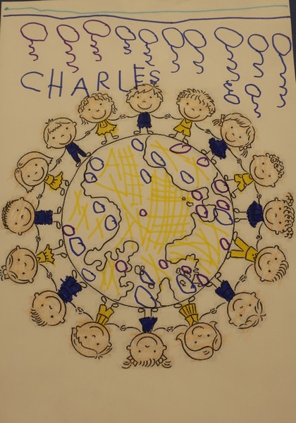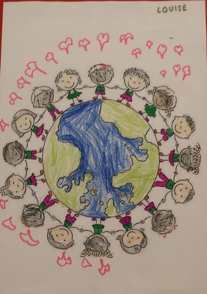 Tous les enfants ont ensuite réalisé un travail à partir d’un mandala. Les moyens et les grands ont orné de graphismes ou de lettres la planète. Et les grands devaient ensuite respecter un algorithme pour colorier les enfants autour de la Terre.